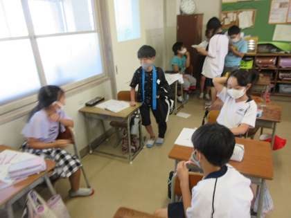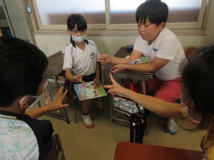 毎週金曜日には、外国語活動の時間があります。英語を使って話をすることにも少しずつ慣れてきた子どもたちです。今日は、ファミリーの仲間が好きなものを予想して尋ねる活動を行いました。