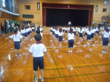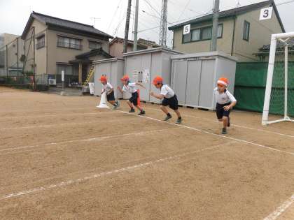 スポーツウィーク(1年生) 公開日 2020/10/05 更新日 2020/10/05 1年生 今日は、ラジオ体操と50m走に取り組みました。 夏休みにラジオ体操ができなかったので、体育の時間を活用して練習しました。50m走では、「1位になりたい」、「最後まであきらめずにがんばりたい」「9月の記録会より速く走りたい」など、一人一人が目当てをもって取り組んでいました。