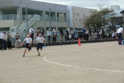 学年リレー大会(3年生) 公開日 2020/10/06 更新日 2020/10/06 学校行事 スポーツウィーク2日目の最後は、3年生の学年リレー大会でした。整然としたグラウンドへの出入り、スムーズなバトンの受け渡し、チームの勝利を目指してより真剣に走る姿等は、1,2年生からの積み重ねを見て取ることができました。