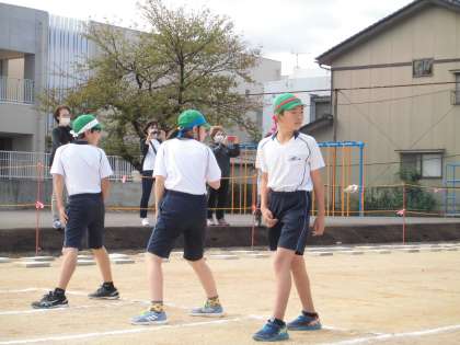 6年生の学年リレーが行われました。団の仲間と一緒に、全力で走りました。