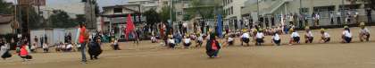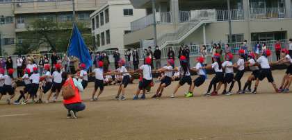 今年度は、各学年、学級同士の対戦でした。子供たちだけではなく、担任の先生たちもこれまで以上に力が入っていたかもしれません。横で応援していた高学年も力が入っていたようです。大きな応援の声と共に「もっと距離をとって!前後離れて!」「おへそを空に!」「足は肩幅!」等のアドバイスの声も上がっていました。
