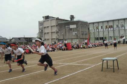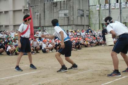 各学年の健脚自慢が出場するF1リレーは、力強い走りや華麗なバトンパスとともに、「隣には負けない」「絶対に追いつく」等々の気持ちのこもった真剣な走りも魅力です。