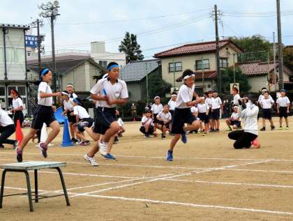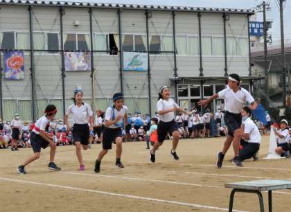 最後のF1リレー(6年生) 公開日 2020/10/09 更新日 2020/10/09 6年生 いつも運動会の最後を飾っているF1リレー。スポーツウィークでも最終種目でした。 これまで、自分たちの練習だけでなく、低学年にバトンパスを教えたり、がんばろうと励ましたりしていきた子どもたち。本番でも、ゴールする瞬間まで力を抜くことなく、精一杯走り切りました。