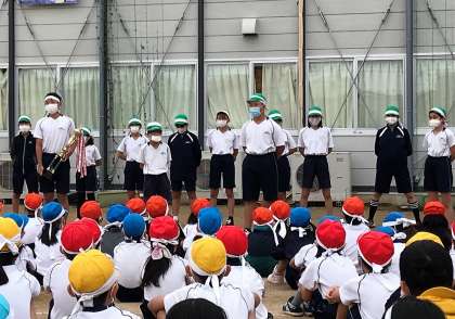 白団解団式(6年生) 公開日 2020/10/10 更新日 2020/10/10 6年生 白団の解団式では、6年生から下級生に感謝の言葉や、来年に向けての励ましの言葉を伝えました。5年生からも、これまでの6年生の努力に対して感謝の言葉が伝えられました。悔し泣きをする姿から、下級生に「本気」が伝わったのではないでしょうか。 お疲れ様、6年生!