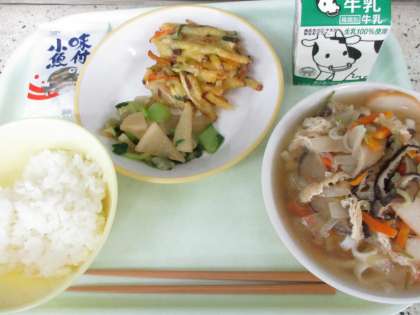 今日は、「エゴマ入りかき揚げ」が出ました。エゴマは、しそ科の一年草で、日本で古くから栽培されています。縄文時代のいせきから、種子も見つかっています。給食に使われているエゴマの葉は、富山市の工場で栽培されているものです。