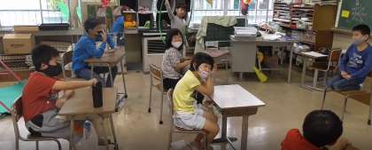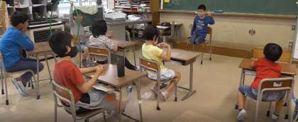 「なかよしむら」に、突然、落語家さんが現れ、「3年生のリレーと習字」という小噺が展開されました。