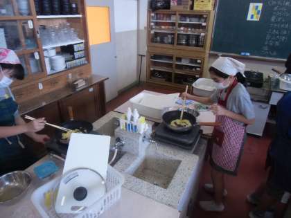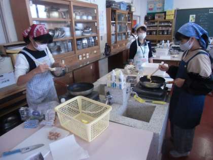 しっかり手洗い、器具のアルコール消毒等に気を配るなど、感染症対策を講じて、一人で作って自分で食べる形をとった「短時間調理に挑戦!卵料理」の調理実習を実施しました。
