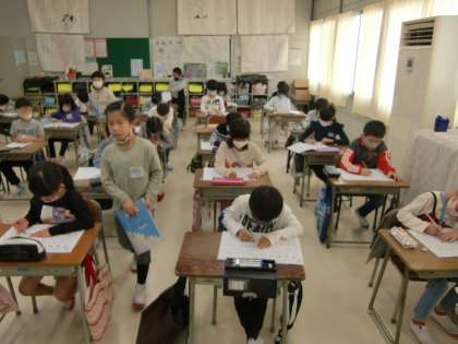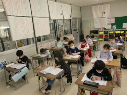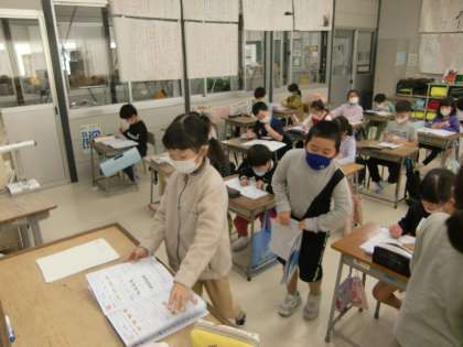 4限の後半は、計算ドリルに取り組みました。かけ算を必死に計算し、書き終わると計算ドリルを黒板前の机に提出しました。学習用具も丁寧に扱うみなさんです。