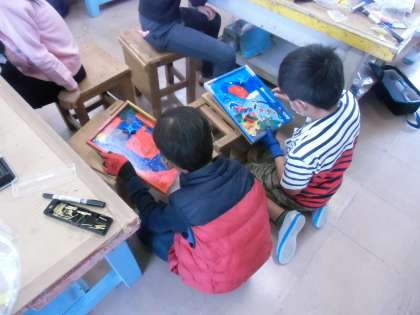 図画工作科で作成しているコリントゲームが、完成に近付いてきました。ビー玉を転がしながら、釘を打つ場所を考えています。