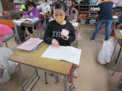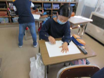 算数科では、円について学習しています。今日は、コンパスの使い方を学習しました。はじめは、うまく回せなかった子どもたちですが、コツをつかむとくるっと回すことができ、きれいな円をかくことができ、うれしそうな表情を浮かべていました。