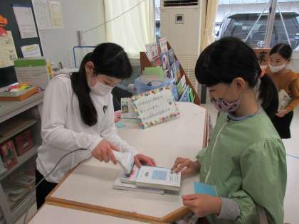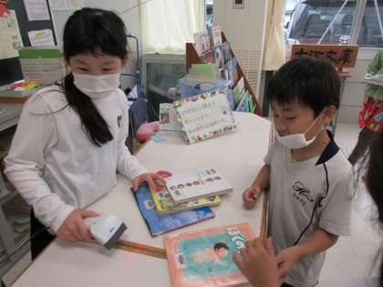 図書委員体験(3年生) 公開日 2020/10/22 更新日 2020/10/22 3年生 今日は何冊も本を読んでいる子が、図書委員体験を行いました。 図書委員会の企画に参加し、何冊もの本を読み、10枚以上のスタンプラリーを達成した子どもが選ばれました。2組の仲間が委員として貸出を行っているので、借りる子供たちも自然と笑顔になっていました。