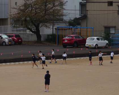 11月に行う4年生の学年リレー大会に向けて、練習に励む子どもたちがいます。休憩時間になるとバトンを持って、仲間と声を掛け合い、グラウンドに向かいます。「スポーツウィークの時よりも速くなりたい」、「バトンパスがもっと上手になって1位を取りたい」など、一人一人が思いをもって取り組んでいます。