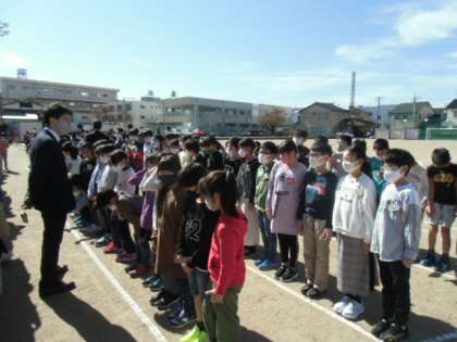 今日の大休憩、全校集合写真撮影をしました。「現在、改築工事や感染症予防等、困難な状況に置かれている子どもたちが、今の堀川小学校に所属していることの意義をみつめ、自分たちの存在を価値あるものと感じられること」をねらいとして、校舎改築及び150周年に向けて、今後4年間毎年撮影していく予定です。校舎2階から撮影するカメラマンの方に、みんな素敵な笑顔を向けていました。今週の木曜日には、航空写真撮影を予定しています。どんな写真になるのか、出来上がりが楽しみです。