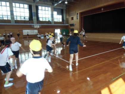 クラスの遊び係の子どもたちが、ケイドロ大会を開いてくれました。みんな笑顔で楽しそうに動いていました。