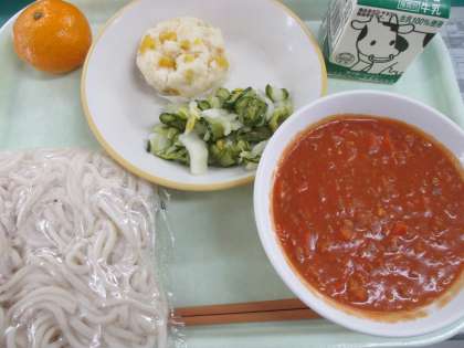 今日の給食には、「ソフトめんのミートソースかけ」が出ました。ソフトめんは、給食で大人気のメニューですが、その中でもメートソースかけが特に好評です。