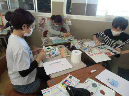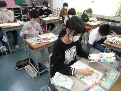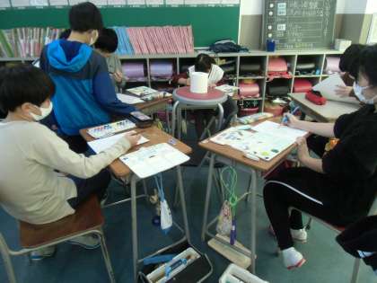 図画工作科で来週写生に行く前に、絵の具でいろいろな色をつくったり、陰影をつけながら立体をデッサンしたりする練習をしました。ファミリーの仲間と同じものをじっくりと観察しながら、それぞれの角度から、デッサンすることができました。その後の彩色も様々な色を使いながら、光と影の様子を表すことができました。