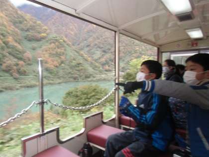 6年生 校外学習 公開日 2020/10/30 更新日 2020/10/30 学校行事 黒部峡谷鉄道トロッコ電車に乗ってきました。ピークを迎えた紅葉を目の前にした子どもたちは口々に「きれい!」と感嘆の声を上げていました。富山に住んでいても意外と乗らないトロッコ電車に興味津々でした。帰りに雨に降られてしまいましたが、満足げな表情で帰っていきました。心は熱いですが体は冷えたと思いますので、土日にしっかりと休んで体調を整えてほしいと思います。