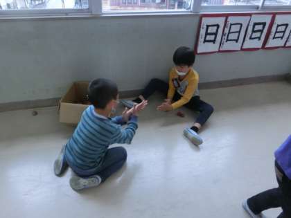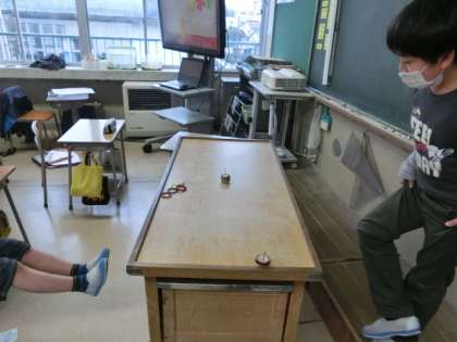 こま遊び(3年生) 公開日 2020/11/02 更新日 2020/11/02 3年生 休み時間にこま遊びをして楽しんでいる子どもたちがいます。ペットボトルと竹串を使って手作りのこまで遊び始める人も出てきました。手作りのこまもよく回ります。