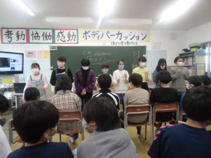 6月から続けてきた音楽科「ボディパーカッション」の学習でつくり上げてきた作品を、今日はクラスの仲間の前で発表しました。中間発表会で仲間からもらったアドバイスをもとに、それぞれのグループが精一杯楽しんで発表している姿が見られました。音にこだわる演奏、リズムの重なりにこだわる演奏、曲のテンポを工夫するなど音楽の構成をこだわる演奏など、それぞれの思いと工夫がつまった素晴らしい発表会になりました。