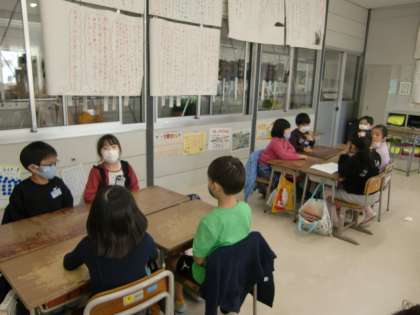 国語科の学習(2年生) 公開日 2020/11/10 更新日 2020/11/10 2年生 「みんなで話をつなげよう−そうだんにのってください−」の学習しました。ファミリーで司会者と話題の提供者と役割を決めて話し合いました。ほとんどのファミリーで「家族へのプレゼントは何がいいか」のという話題で話し合いを進めていました。ご家族の方々への思いが垣間見える1時間でした。