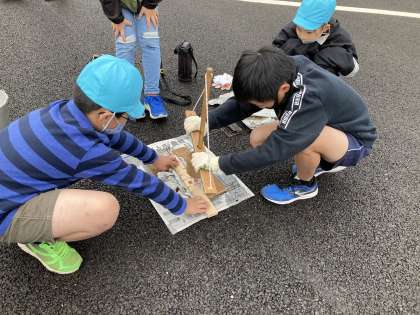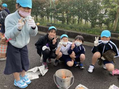 11月10日、国立立山青少年自然の家より2名の講師をお招きし、火起こし体験とテント張り体験を実施しました。今年の宿泊学習を日帰りにしたことにより、計画していたけれどできなかった体験活動を学校の方で行うことができました。
