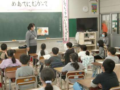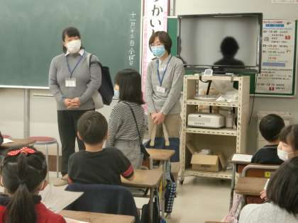 図書館訪問(2年生) 公開日 2020/11/13 更新日 2020/11/13 2年生 富山市立図書館堀川分館の司書の方から図書館の利用の仕方を学んだり、司書の方の本の読み聞かせを聞いたりしました。「ききみみずきん」や「やまねこ こんにちは」「ねずみのヤカちゃん」と動物が登場するお話を聞きました。心温まる一時でした。