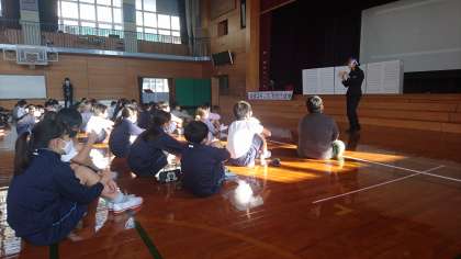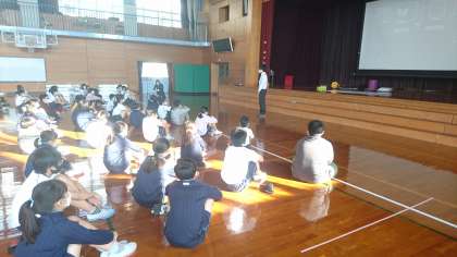6年生の卒業式では、毎年5年生が入場曲と退場曲を合奏しています。今年も、6年生にお祝いの気持ちと堀川小学校での思い出を届けるために、合奏するので、子どもたちには楽譜と曲の提示を行いました。