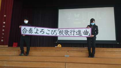 合奏「校歌行進曲」「よろこび」の提示(5年生)