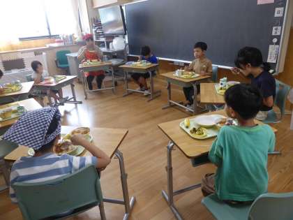 なかよし会食(なかよし級) 公開日 2024/10/01 更新日 2024/10/01 特別支援 9月の最終日 今日の献立は みんなの大好きな「ハヤシライス」 給食委員さんが 「はやし」さんという人が考えた料理だから 「ハヤシライス」になった と 放送されたのを 聞いて 「へええ〜」「そうだったの〜」と驚いたり 納得したりする子どもたちでした
