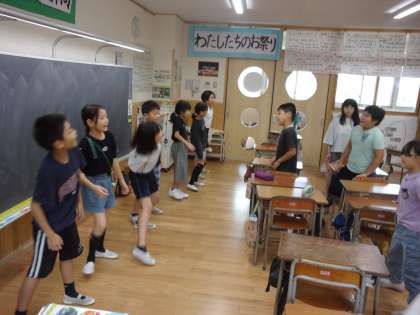 各学級でも、学年団役員を中心に、自主的な練習が展開されました。競技の役員は綱引きやリレー、徒競走で団が勝つための作戦や練習方法、練習計画等を提案したり、エクササイズの練習を呼びかけて行ったりしました。応援の役員は、6年生が考えた応援の復習をみんなで行ったり、団席での応援方法を考えたりしていきました。どの休み時間も団役員を中心に熱のこもった練習が当日まで続きました。