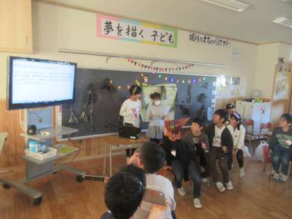 ハロウィン集会を行いました。集会をみんなで楽しむためにそれぞれが準備を進めてきました。出し物を楽しんだり、手作りプレゼントをもらって嬉しそうにしたり、笑顔があふれる集会になりました。