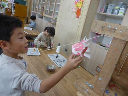 スルスル ビューン(なかよし級) 公開日 2024/11/13 更新日 2024/11/13 特別支援 図画工作科の学習が大好きな1年生 ロープウェイを 何が滑ると面白そうか想像し 作りたいものを決め 材料を選びました クリップの付け方を工夫すると ビューンと速くなったり コトコトゆっくり進んだり 変化しました わくわくして 今日も とっても楽しい2時間でした