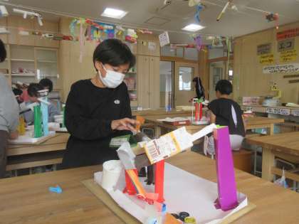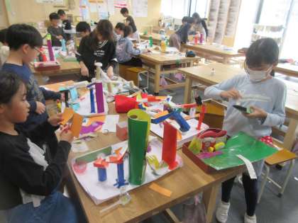使う材料を工夫しながら何種類もコースを作り、完成した作品を互いに楽しむ子どもたちの姿が見られました。