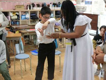5年生は青年研修(JICA訪問)に来られた9名の方々と交流する機会をいただきました。