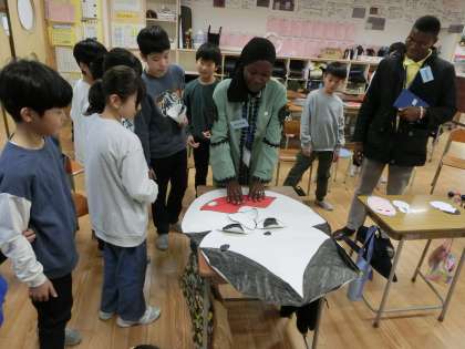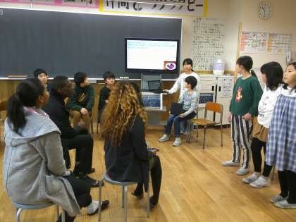 日本の文化、遊び、食、名所、そして各クラスの追究を紹介しました。できるだけ直接コミュニケーションを図れるよう、英語で話そうと努めた子どもたちです。交流を終えて「話しているときも待っているときもずっと緊張していた」「英語で話したことが伝わって嬉しかった」と自分の気持ちや頑張りを振り返りました。その後、5年生との交流を喜んでいただけたことを聞いた子どもたちは「準備を頑張ってよかった」「楽しんでもらえてよかった」と安堵した様子でした。