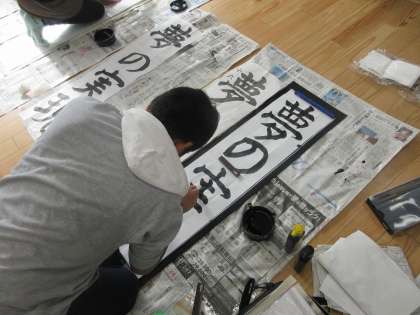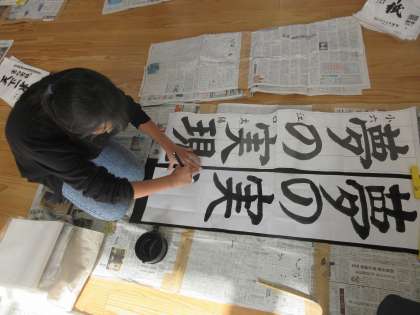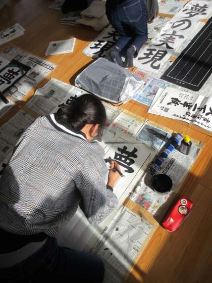 書初練習が本格的に始まりました。「『夢の実現』って、いい言葉だね」「やっぱり『夢』は、大きく書きたいよね」などと話しながら、自分の目当てに向かって取り組もうとする子どもたち。