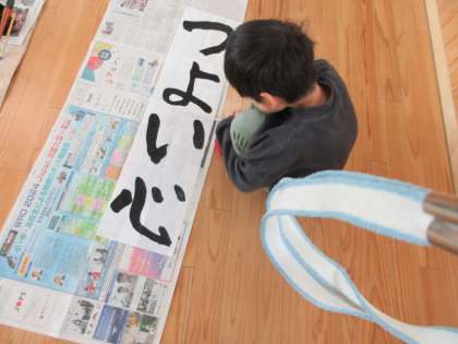 書き初め大会に向けて(3年生) 公開日 2024/12/05 更新日 2024/12/05 3年生 初めてだるま筆を使って書き初めの練習をしました。慣れない筆の大きさに苦戦しながらも、字のバランスや配置に気をつけながら、なんとか書き上げました。これからの上達が楽しみです。