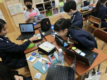 ティッシュケースをつくろう(5年生) 公開日 2024/12/13 更新日 2024/12/13 5年生 家庭科でティッシュケース作りをしています。ファミリーの仲間とどうしたら上手に縫えるか話合いながら集中して縫っていました。仕上がりが楽しみです。