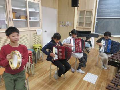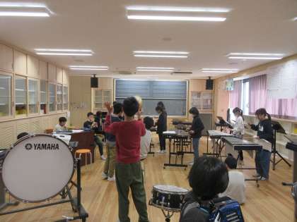 音楽室の扉を開けたときの光景です。互いに声をかけ合い、みんなで合奏を楽しんでいる子どもたちの姿が見られました。昨年度、5年生のときにも区域の音楽会に向けて、自分たちで合唱や合奏をつくり上げてきた子どもたち。一人ひとりの真剣な表情を見て、胸が熱くなりました。