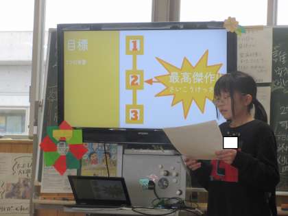 くらしづくり集会では、各クラスの代表者が2学期の頑張りを発表しました。目当てをもって取り組んできたことや学級で力を入れてきた学習など、その子らしさが光る発表となりました。聞いていた仲間の心にもその思いは届き、それぞれの頑張りを振り返る機会となりました。