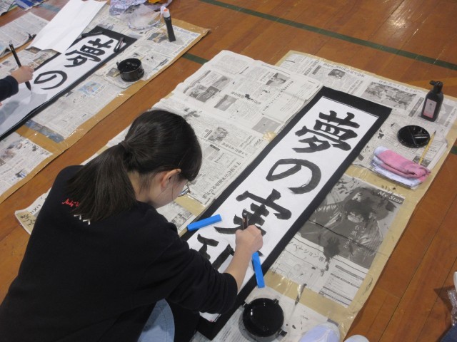 始業式の後は、書初大会を行いました。「夢の実現」という同じ言葉を書いていますが、子どもたちの作品には、力強さや優しさなど、それぞれの人柄が表れていました。今年も、それぞれの夢の実現に向けて自分の力を存分に発揮しようとする子どもたちを、担任一同全力で応援していきます。