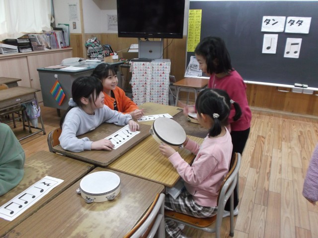 来年度就学予定の子どもたちをお招きして、「がっこうたいけん ほりかわしょうがっこうへいこう」を行いました。子どもたちはグループに分かれて1,2年生のクラスで交流活動を行いました。言葉遊びコーナーを回りながら国語の学習をしたり、リズムカードを見ながら楽器をたたき、音楽に親しんだり、かもつれっしゃをして触れ合いながら交流を楽しんだりする姿が見られました。