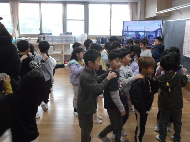 「とっても楽しかったよ」と笑顔で答える子どもたち。もう、小学校で「学びたい」という気持ちが膨らんできているようです。そんな子どもたちを見て、1,2年生も「ぼくたちがやさしく教えてあげたい」という気持ちを強くしていました。来年度は一緒に学校でのくらしをつくっていく仲間です。