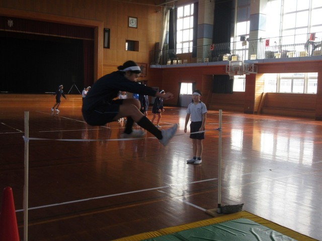 体育科の学習では、高跳びに取り組んでいます。自分の目当てを決めて、黙々と練習する子どもたちです。