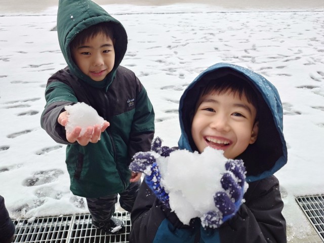 今日は、クラスの仲間全員で、念願の雪遊びができました。