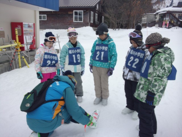1月23日、立山山麓スキー場らいちょうバレーエリアにて、スキー学習を行いました。4年生は初めてスキーをする子どもも多く、期待と不安が入り交じりながら、当日を迎えました。活動が始まると、どのグループでも自分の立てた目当てを達成しようとインストラクターの方の話を真剣に聞き、実践していました。始めはスキーの扱いにとまどったり、斜面に苦戦したりする様子が見られましたが、次第にこつをつかんでいき、「滑れるようになったよ」や「楽しい」といった声がゲレンデのあちこちから聞こえるようになりました。このスキー学習を通してスキーの楽しさと大きな達成感を味わうことができた子どもたちでした。