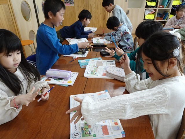 算数科の学習で、広さ比べをしています。