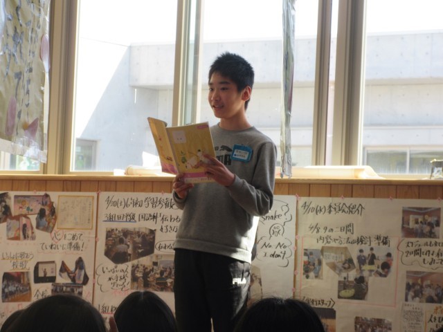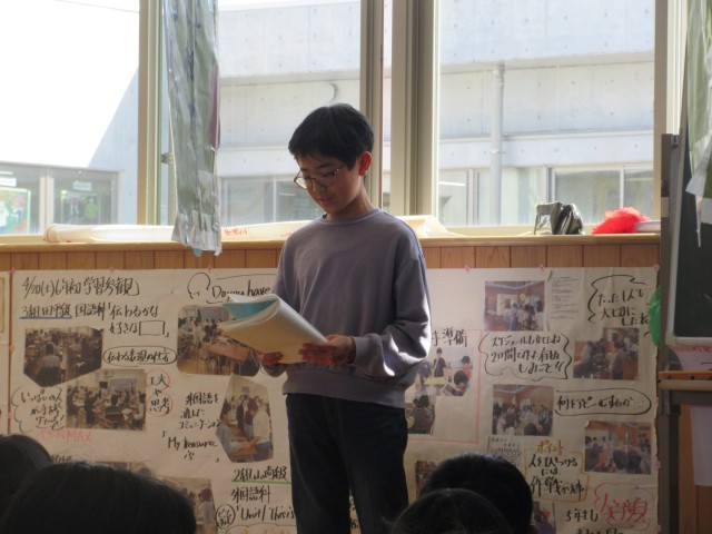 各学級の代表者が、この一年間での自分のがんばりについて発表しました。その思いをしっかりと受け止める仲間の姿も素敵です。