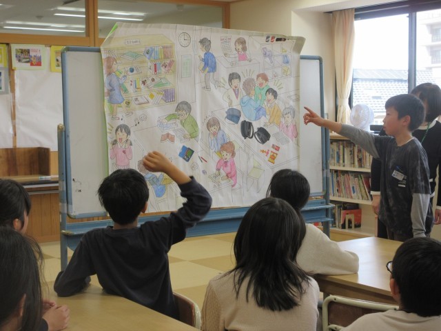 これまでも図書室を利用していた子どもたちですが、5年生になり、あらためて図書室の正しい利用の仕方を見直したり、本の分類について学んだりしました。司書の先生に「読書が好きな人?」と聞かれると、たくさんの子どもが手を挙げました。これからも読書に親しんだり、本を活用して学習を深めたりしていきたいと思います。