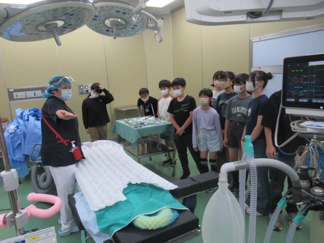 富山市民病院で看護体験や病院内の見学をしました。普段入れない場所をじっくりと見学したり、触れない機械、器具を触ったりさせて頂きました。子どもたちは看護師の方々の説明も真剣に聞き、貴重な体験ができたと喜んでいました。